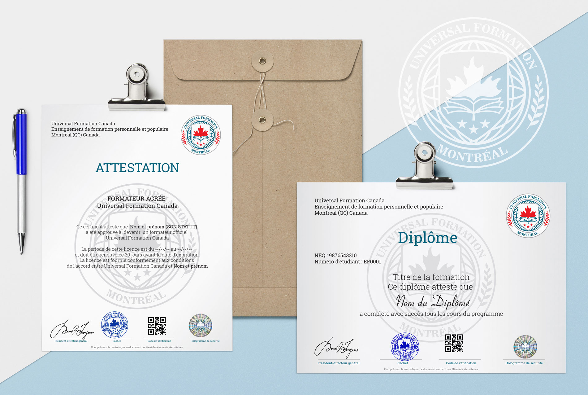 C’est un formateur officiellement reconnu par Universal Formation Montréal pour former et organiser la passation des Diplômes de formation Universal Formation.